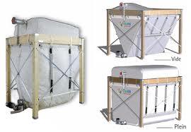 Le stockage peut s'effectuer de 2 manières : - le silo textile, un cadre en bois recevant une bache tres résistante, pouvant contenir jusqu'à 7 tonnes selon les modèles avec une ou deux bouches de remplissage.( le silo textile peut être posé à l'extérieur hors projection de pluie).