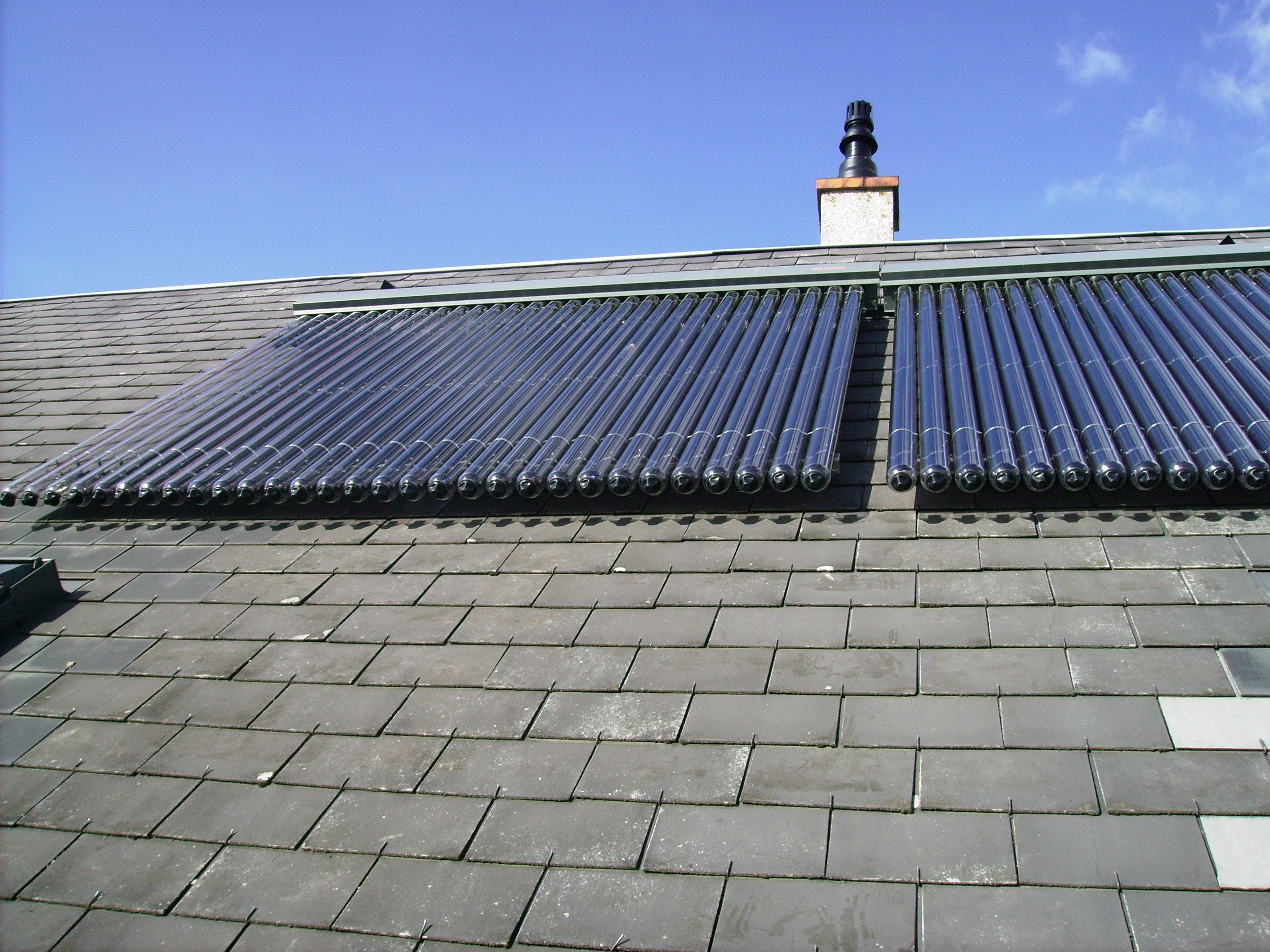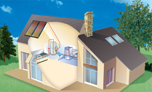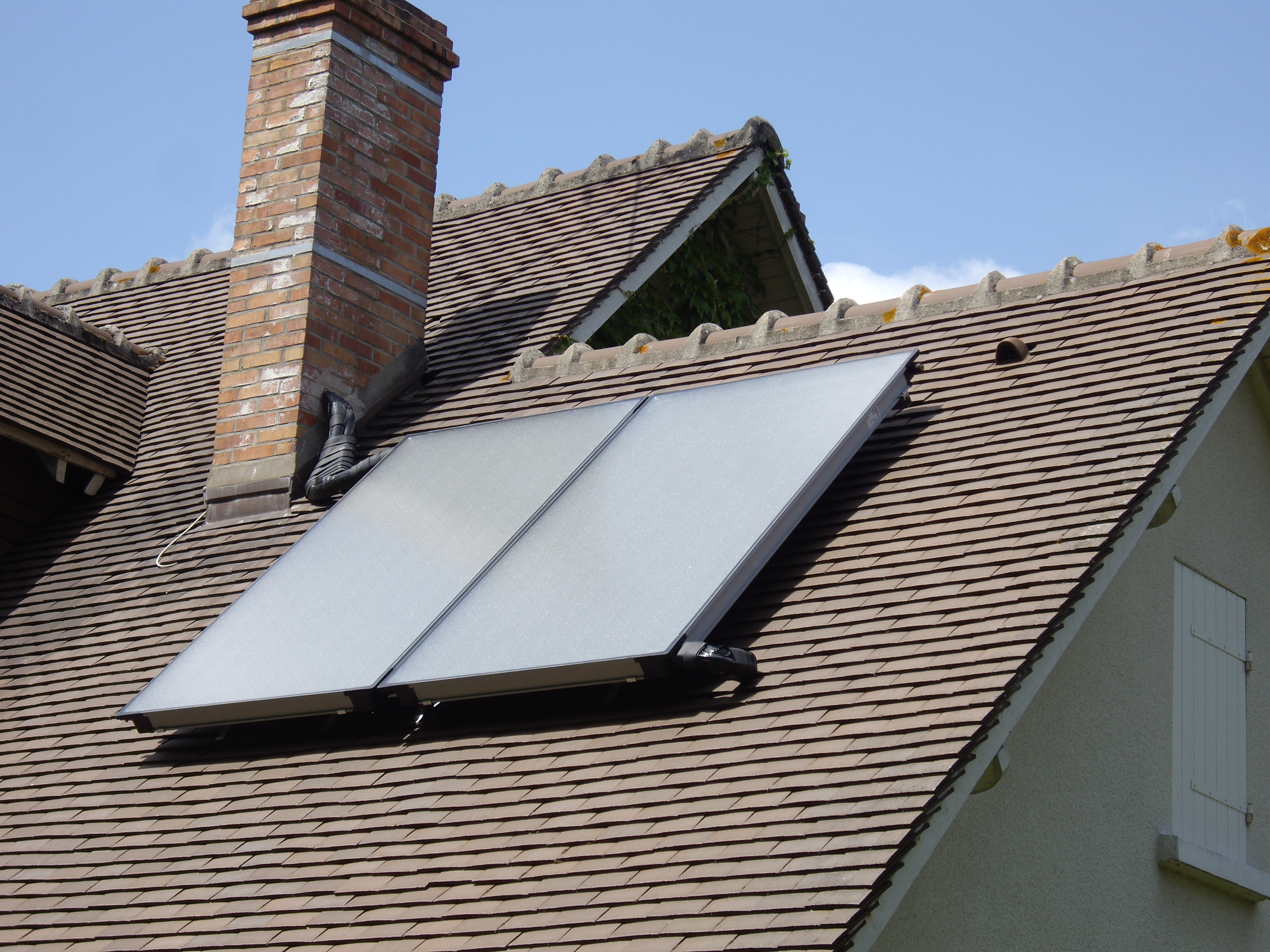 Principe : Des capateurs solaires, tubulaires ou panneaux (plan) sont situés sur le toit de votre habitation afin de capter le moindre rayon UV, pour le transformer en chaleur, un liquide caloporteur (antigel) est mis en circulation par une pompe et transit ainsi dans le capteur pour récuperer les calories apportés par le soleil, et les acheminer ensuite dans le ballon d'eau chaude sanitaire, afin cette fois de ce décharger de ces calories par l'intermédiaire d'un serpentin à l'intérieur du ballon.