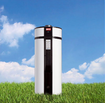 Un groupe frigorifique est placé sur le dessus du ballon d'eau chaude, récupere par l'intermédiaire de gaines, les calories contenus dans l'air, et les restitues à un échangeur noyé dans le ballon d'eau chaude. On retrouve alors le fonctionnement d'une pompe à chaleur qui nous permet de produire environ 60 à 70 % d'eau chaude gratuite. (on retrouve à peu près les caractéristiques d'un chauffe-eau solaire. à médité !