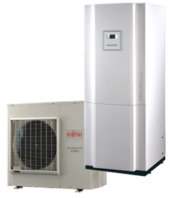 Principe : Une unité extérieure capte les calories contenus dans l'air par l'intermédiaire d'un groupe frigorifique, et les restitues par le biais d'un échangeur, à l'installation de chauffage à eau chaude, un ballon tampon ou module hydraulique intérieur, stocke l'eau chaude afin de l'envoyer vers les radiateurs ou le plancher chauffant à la demande de la régulation, l'énergie utilisée est l'électricité pour le fonctionnement du groupe et des circulateurs, on parle de C.O.P (coéficient de performance) pour déterminer l'énergie conssomée par rapport à celle restituée à l'installation, ainsi un C.O.P de 3,5 signifie que lorsque le compteur électrique délivre 1000 W on en restitue 3500 aux emetteurs de chaleur. Les C.O.P sont en moyenne de 3 à 4.5 sur le plus grand nombre de modèles.